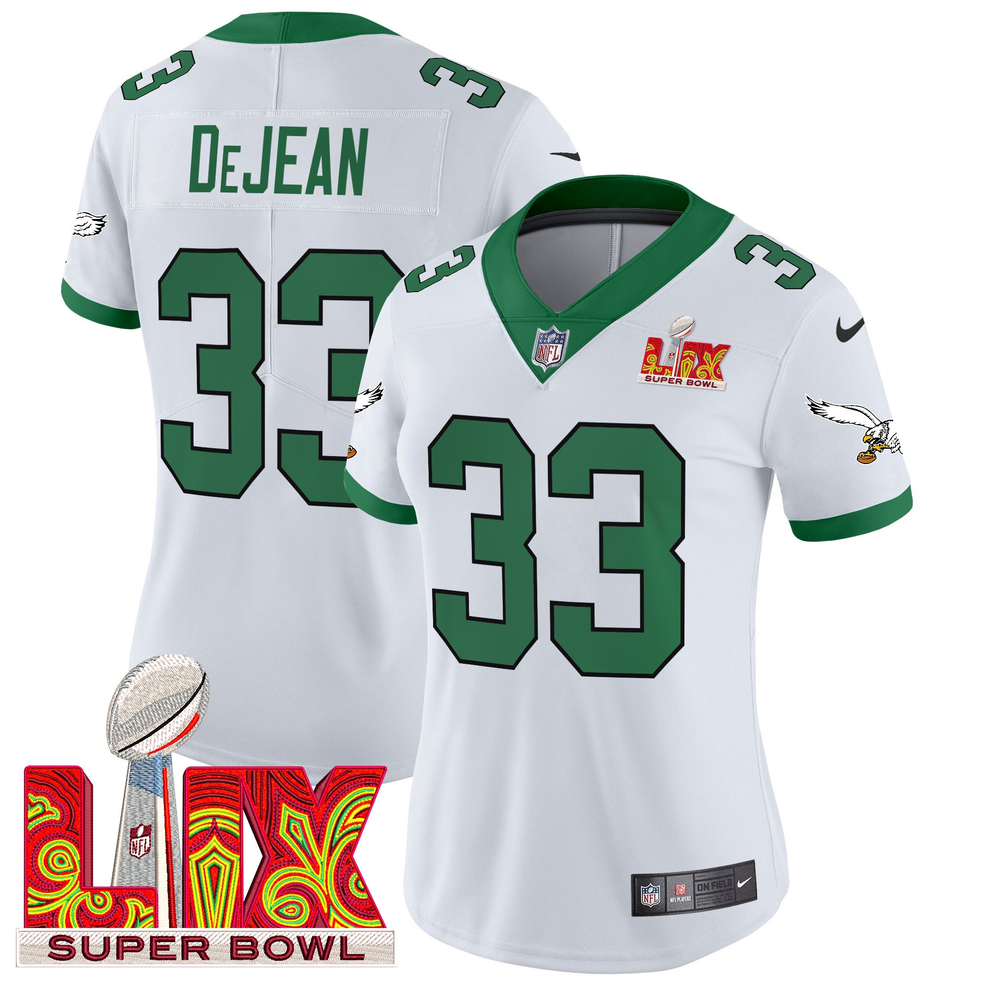 Saquon Barkley Women’s Philadelphia Eagles Kelly Green Super Bowl LIX Patch Vapor Limited Black Alternate Jersey – All Stitched