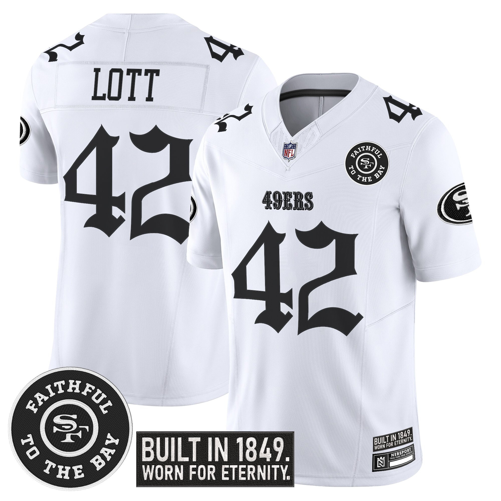 - Embroidered name, numbers and logos