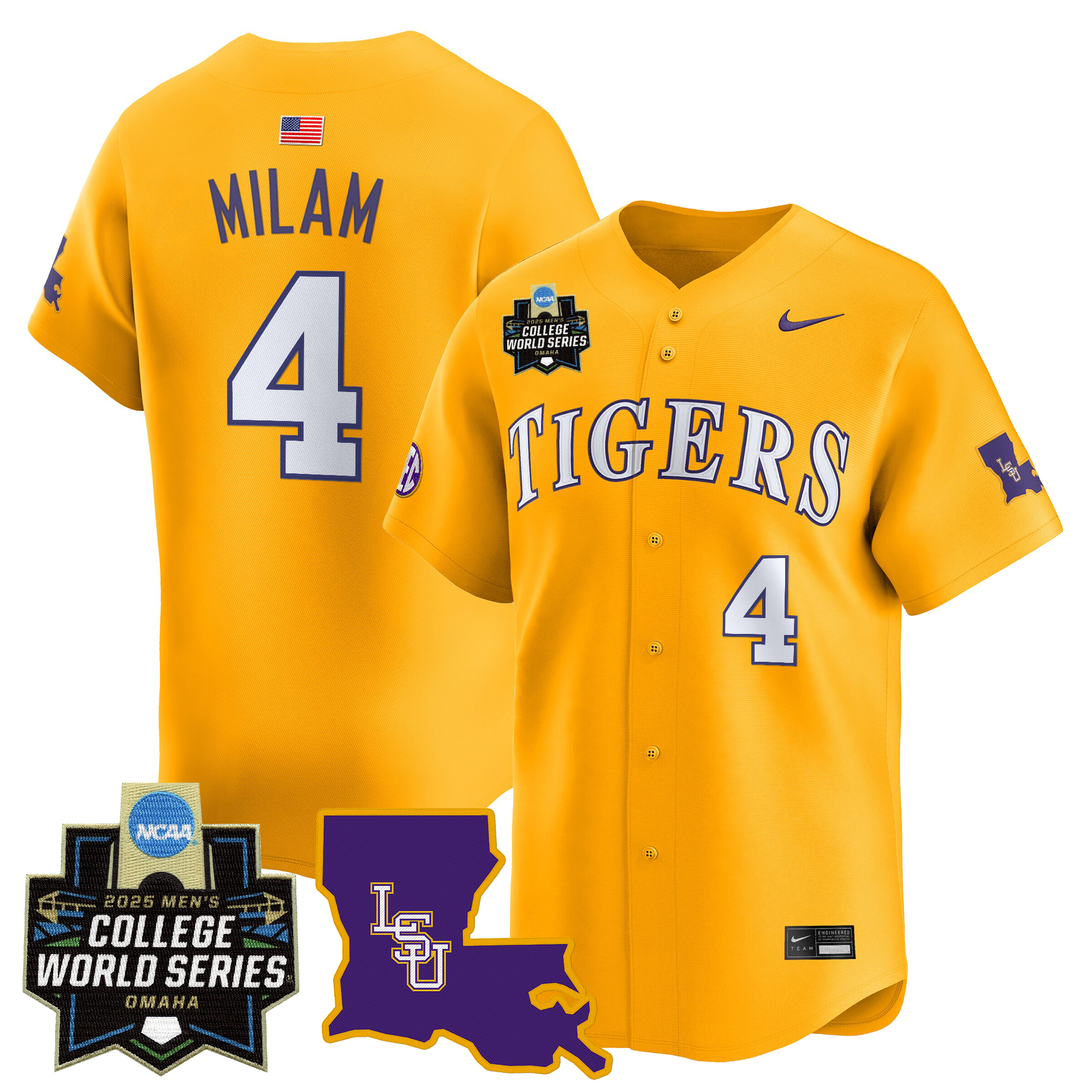 Be the first to review “Todd Walker Men’s LSU Tigers 2025 World Series Vapor Premier Limited Gold Jersey – All Stitched”