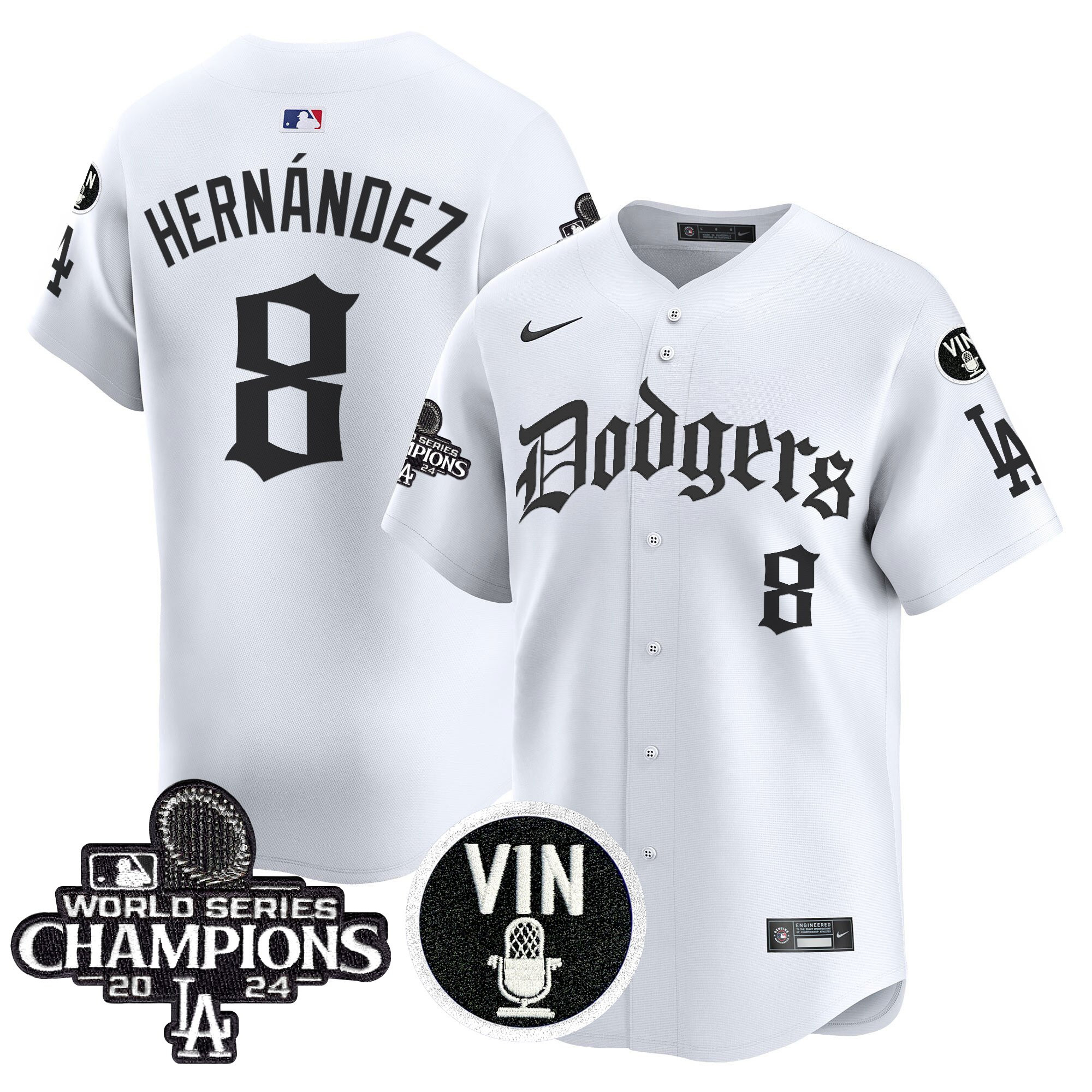 Be the first to review “Vin Scully Men’s Los Angeles Dodgers 2025 LA Gothic Style Vapor Premier Limited White Jersey V2 – All Stitched”