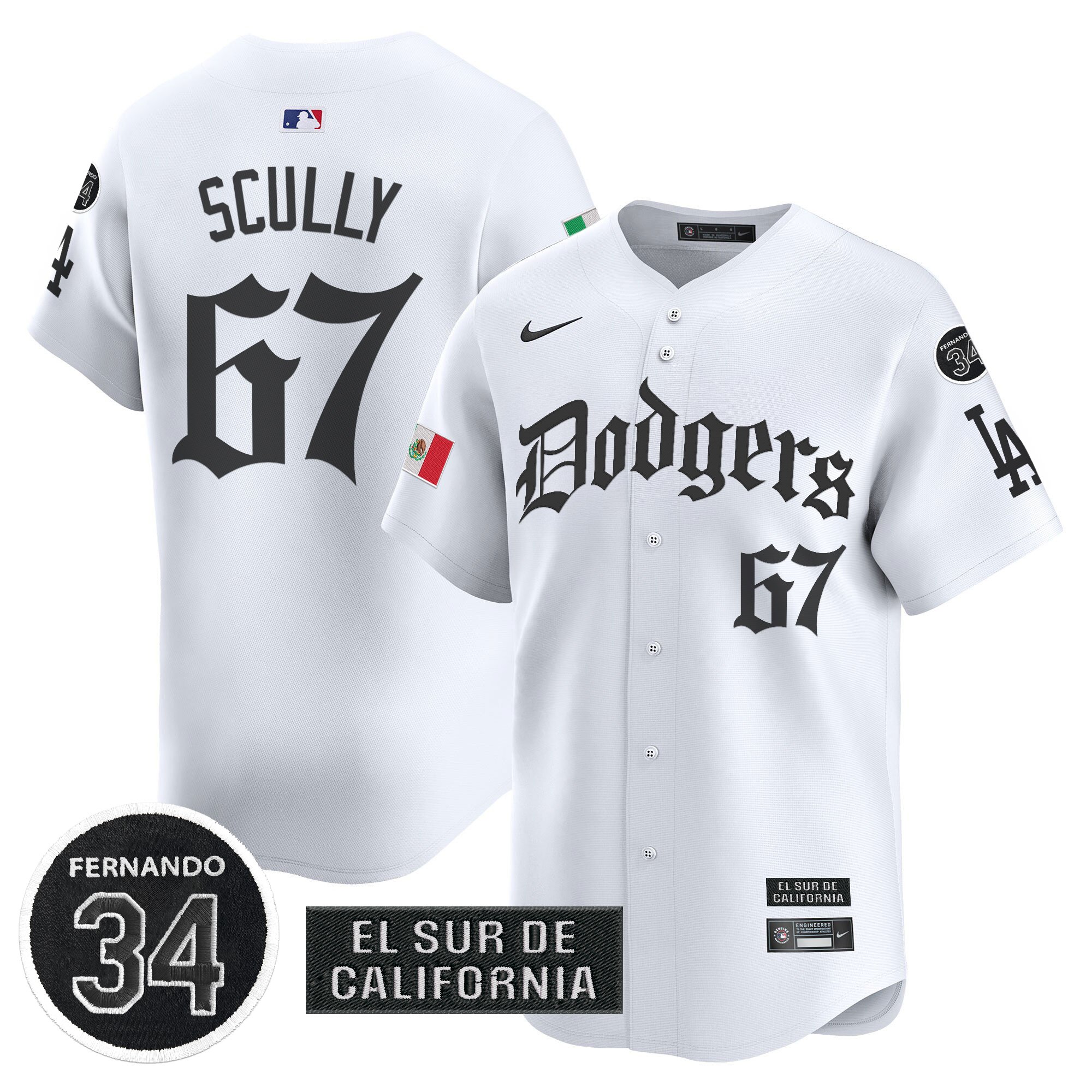 Vin Scully Men’s Los Angeles Dodgers Mexico 2025 LA Gothic Style Vapor Premier Limited White Jersey V2 – All Stitched