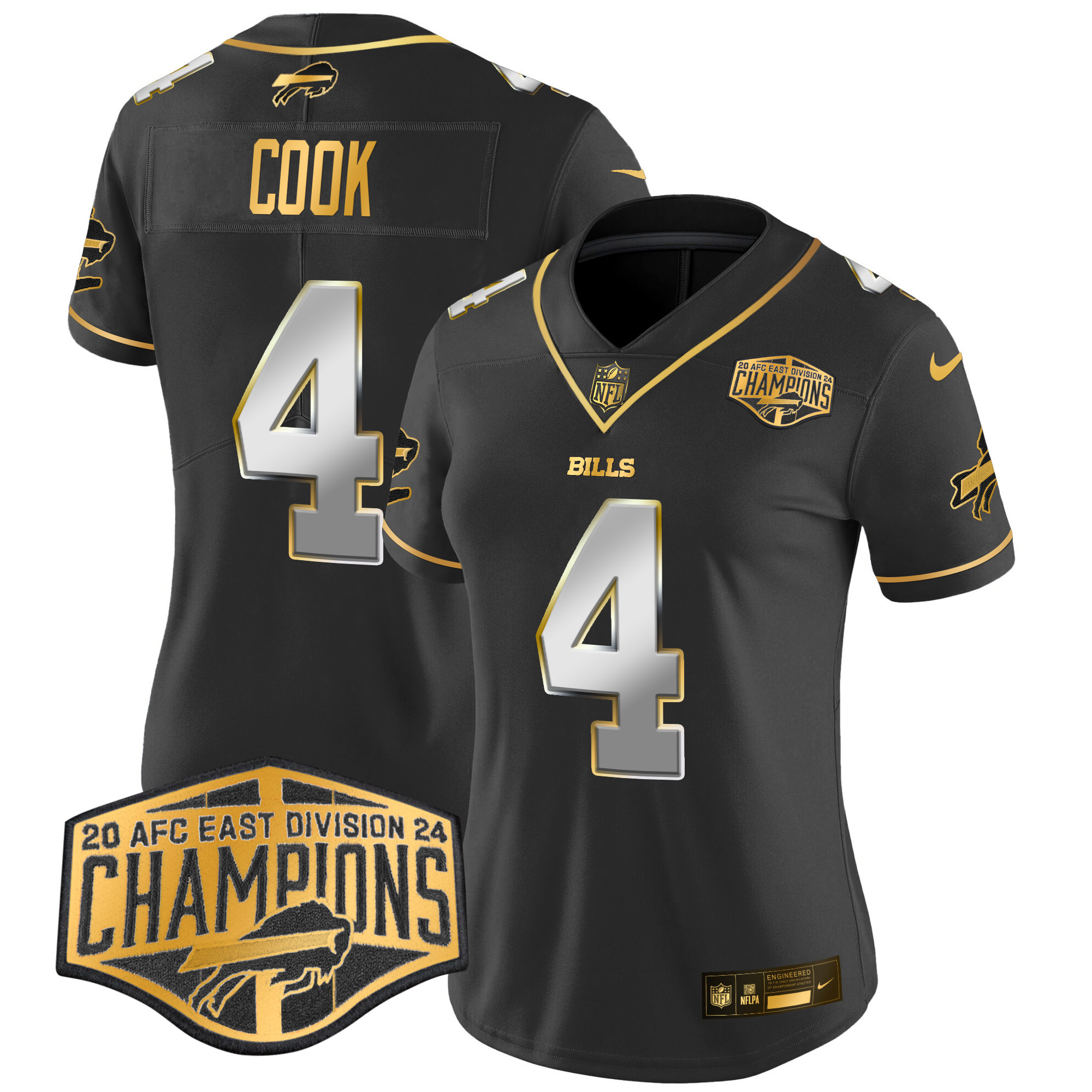 Von Miller Women’s Buffalo Bills 2024 AFC East Division Champions Gold Vapor Limited Black Limited Jersey – All Stitched