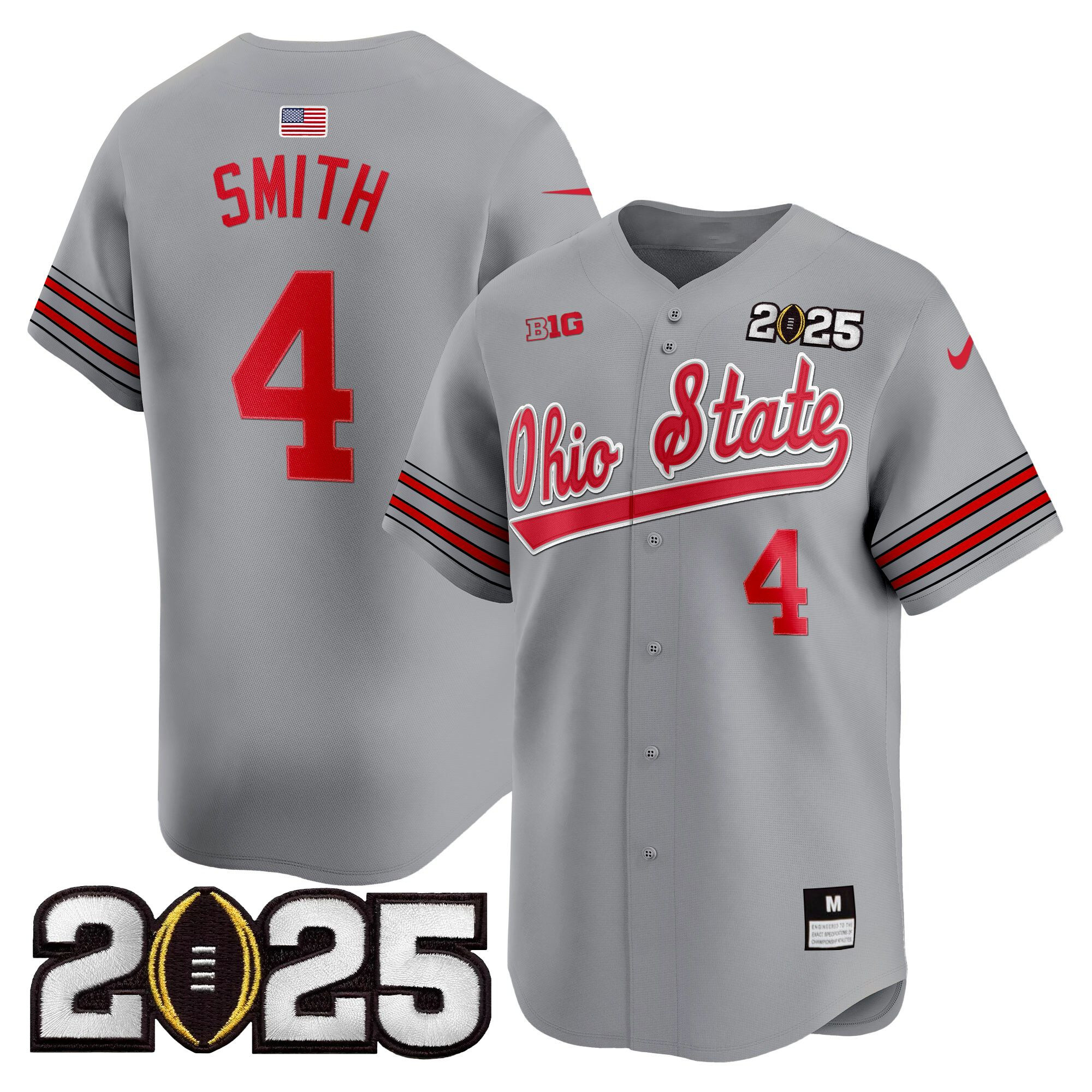 Will Howard Men’s Ohio State Buckeyes ‘Heritage Stripe’ 2025 CFP Final Patch Vapor Baseball Gray Jersey V2 – All Stitched