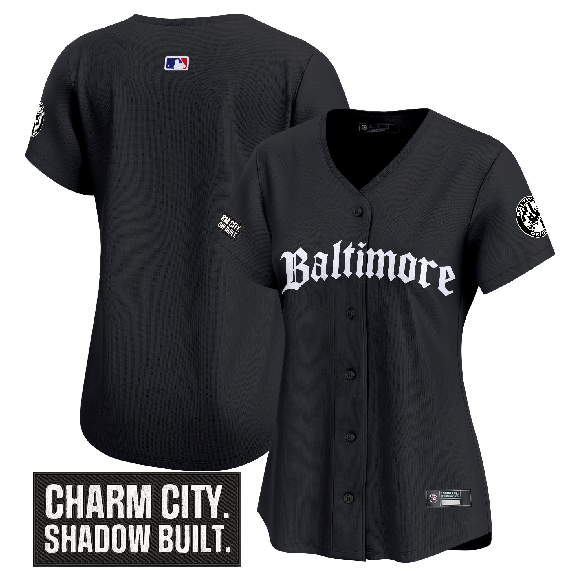 Women’s Baltimore Orioles ‘Gothic Harbor Edition’ Vapor Premier Limited Black Jersey – All Stitched