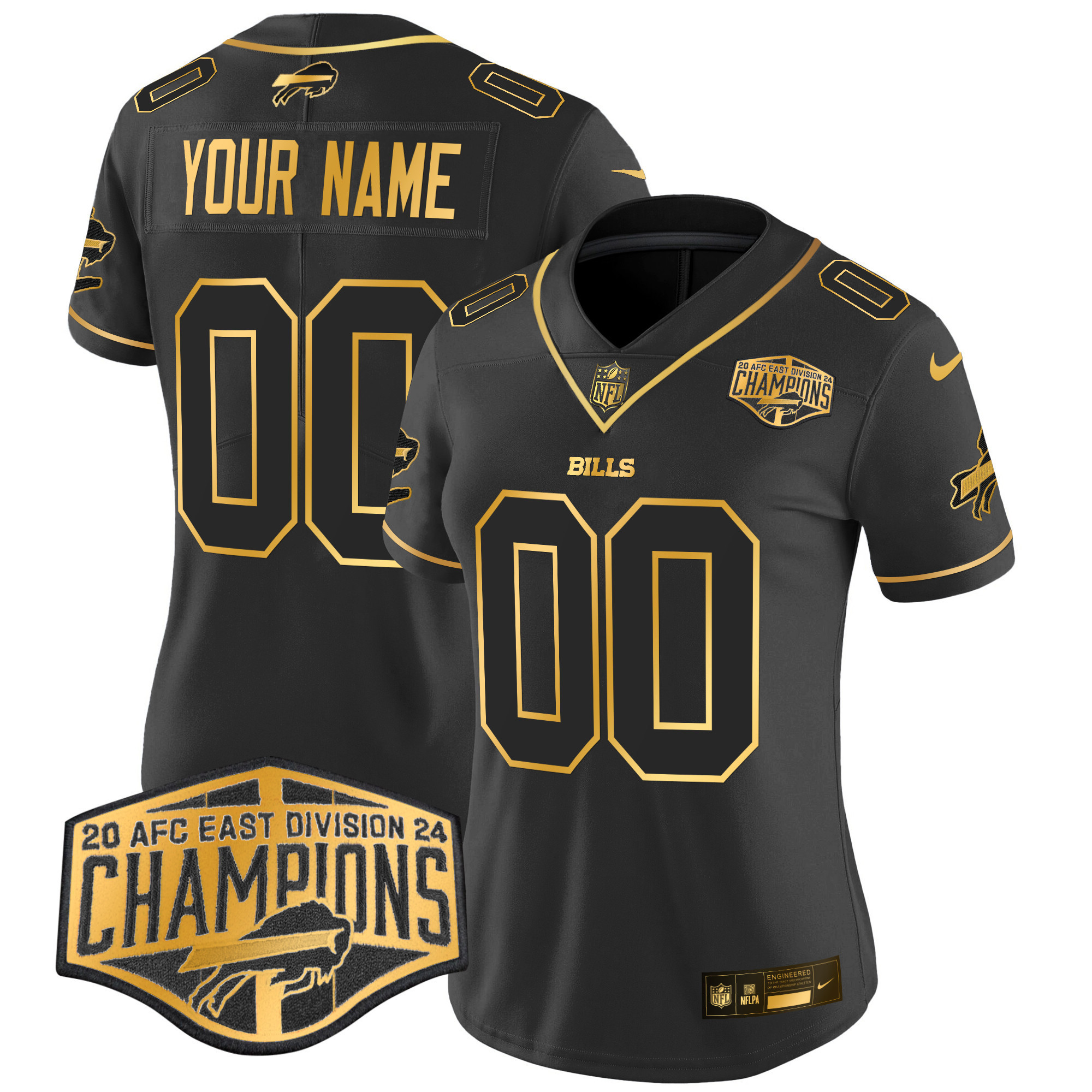 Women’s Buffalo Bills 2024 AFC East Division Champions Gold Vapor Limited Custom White Gold Jersey – All Stitched