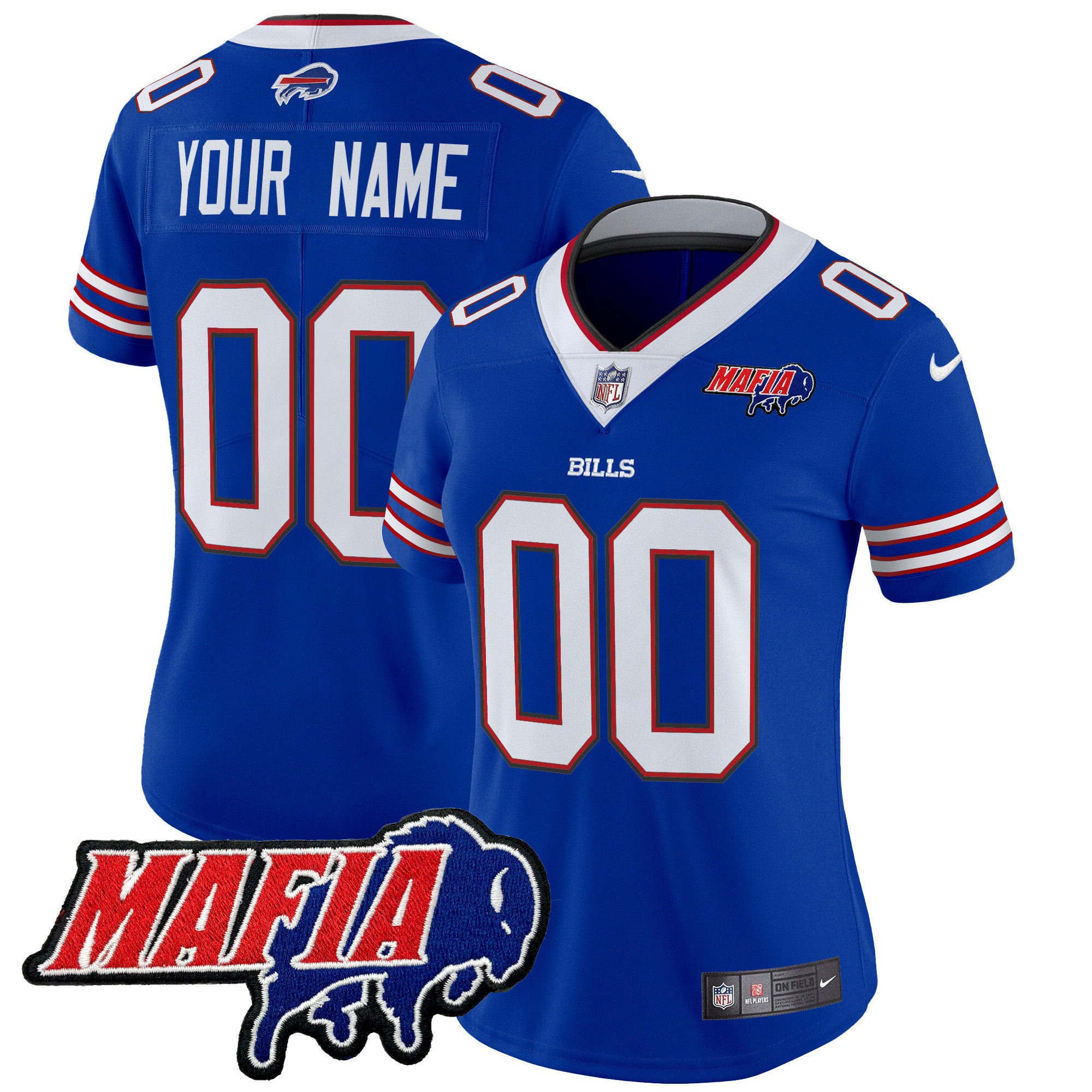 Women’s Buffalo Bills 2024 Buffalo Bills Mafia Patch Vapor Limited Custom Red Jersey – All Stitched