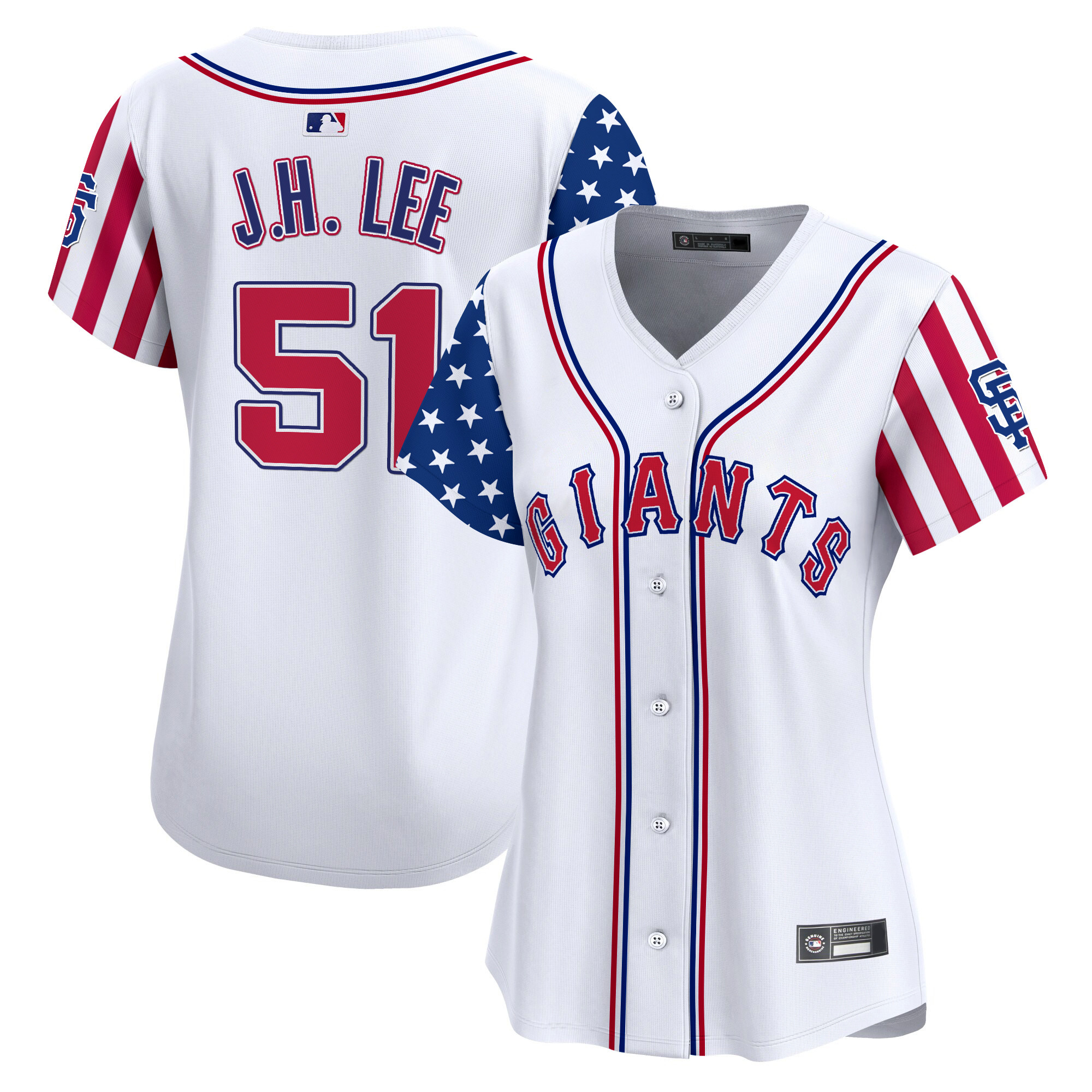 Women’s San Francisco Giants 2025 Independence Day Vapor Premier Limited White Jersey – All Stitched