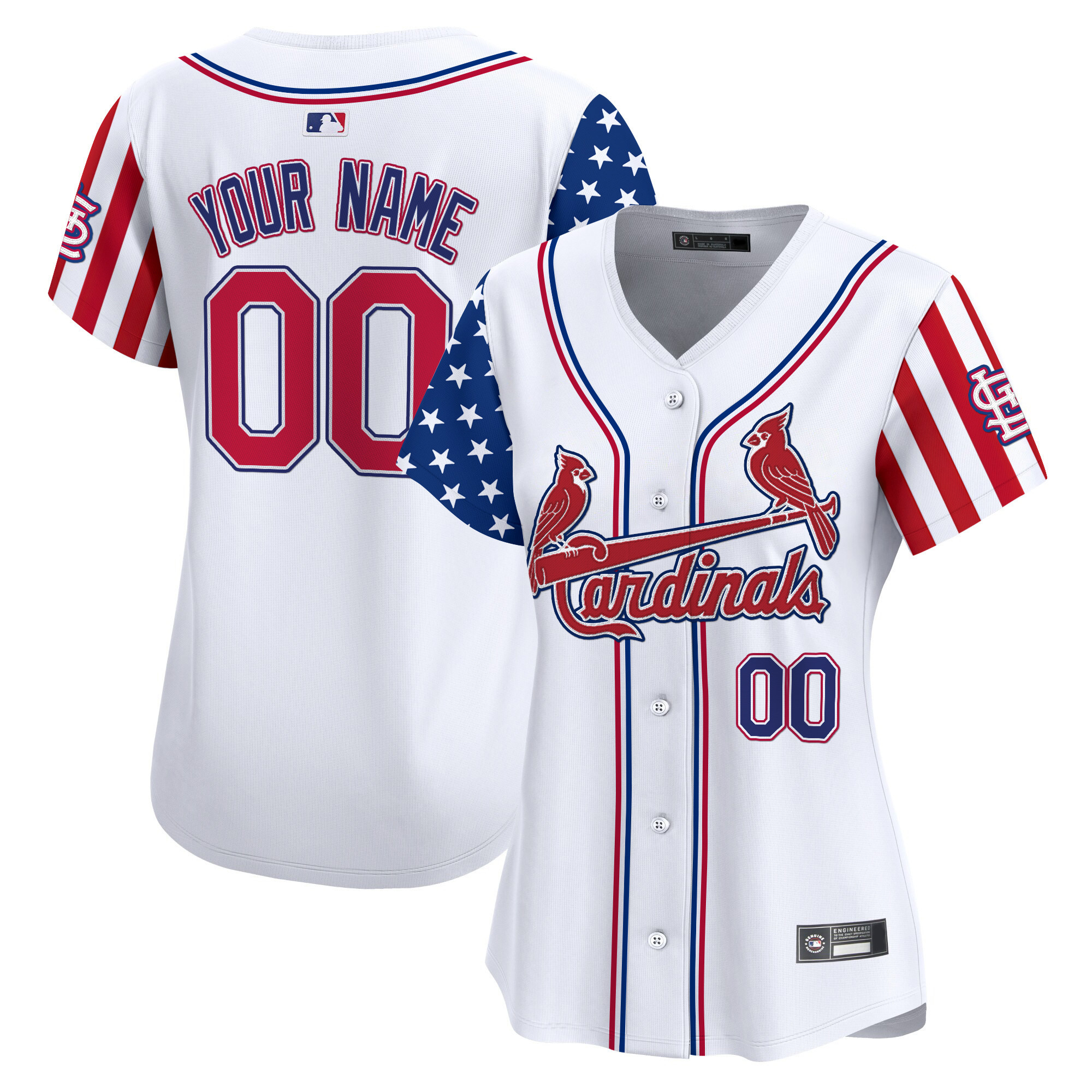 Women’s St. Louis Cardinals 2025 Independence Day Vapor Premier Limited Custom Red Jersey V2 – All Stitched