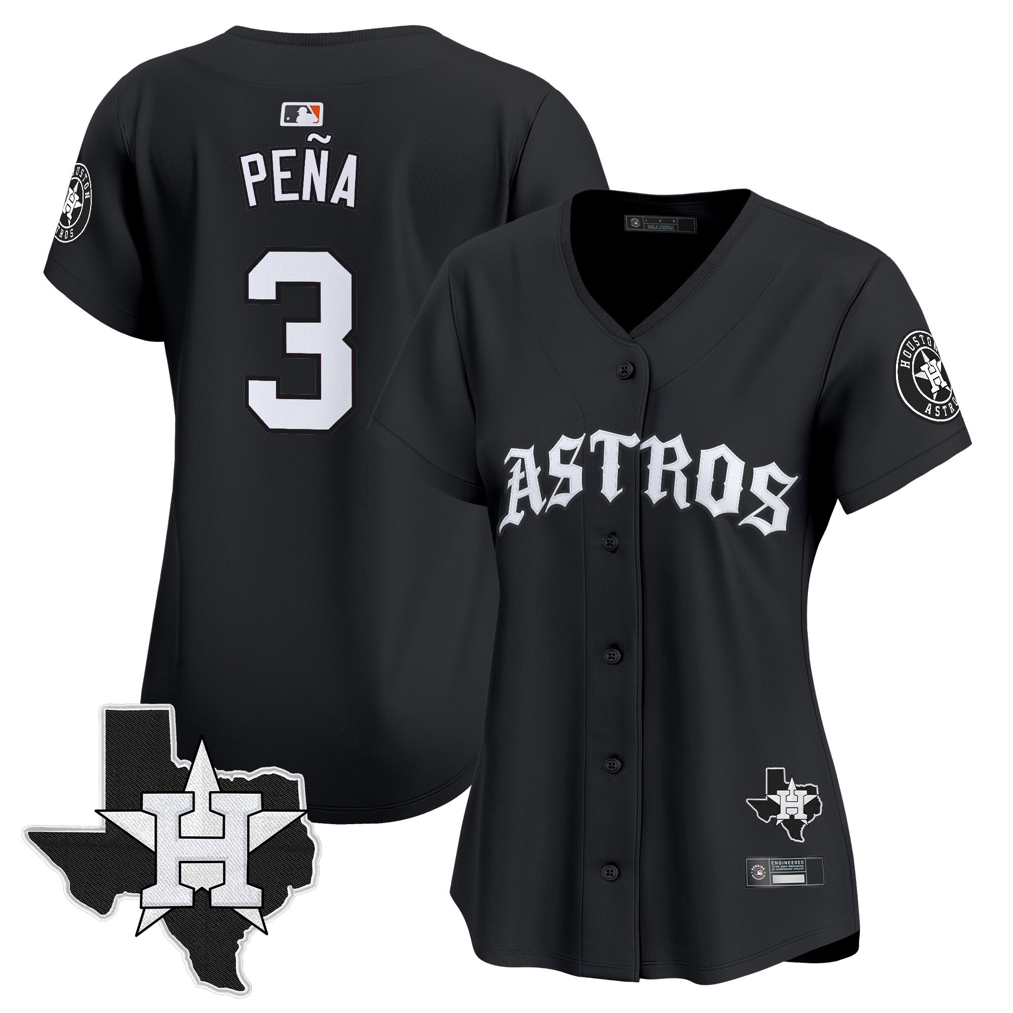 Yordan ÃÂlvarez Women’s Houston Astros ‘Old English Edition’ Vapor Premier Limited Black Jersey – All Stitched