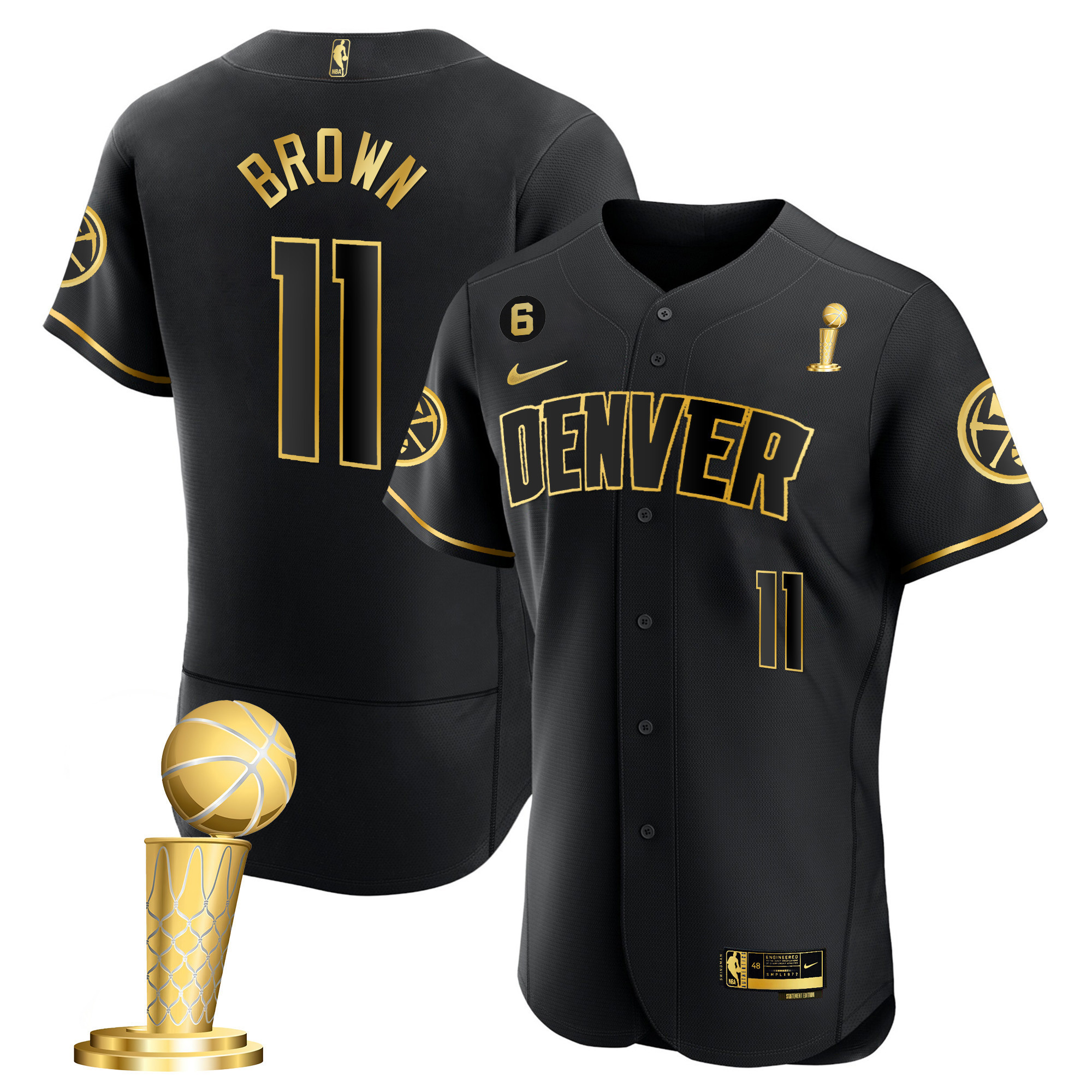 Youth’s Denver Nuggets 2023 Champions Flex Base Black Gold Jersey – All Stitched