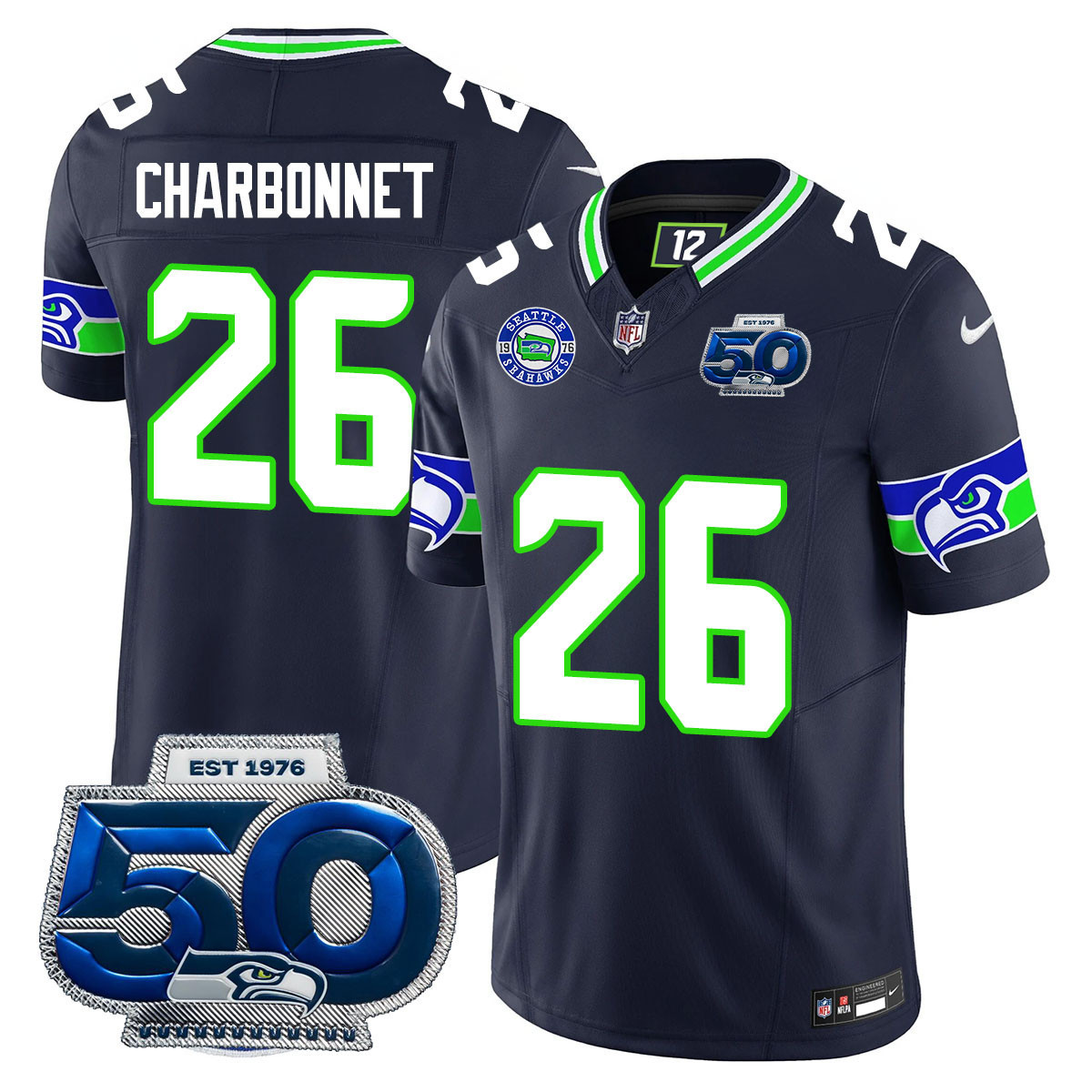 Zach Charbonnet – 26 Men’s Seattle Seahawks 50th Season Vapor Limited Royal Alternate Jersey – All Stitched