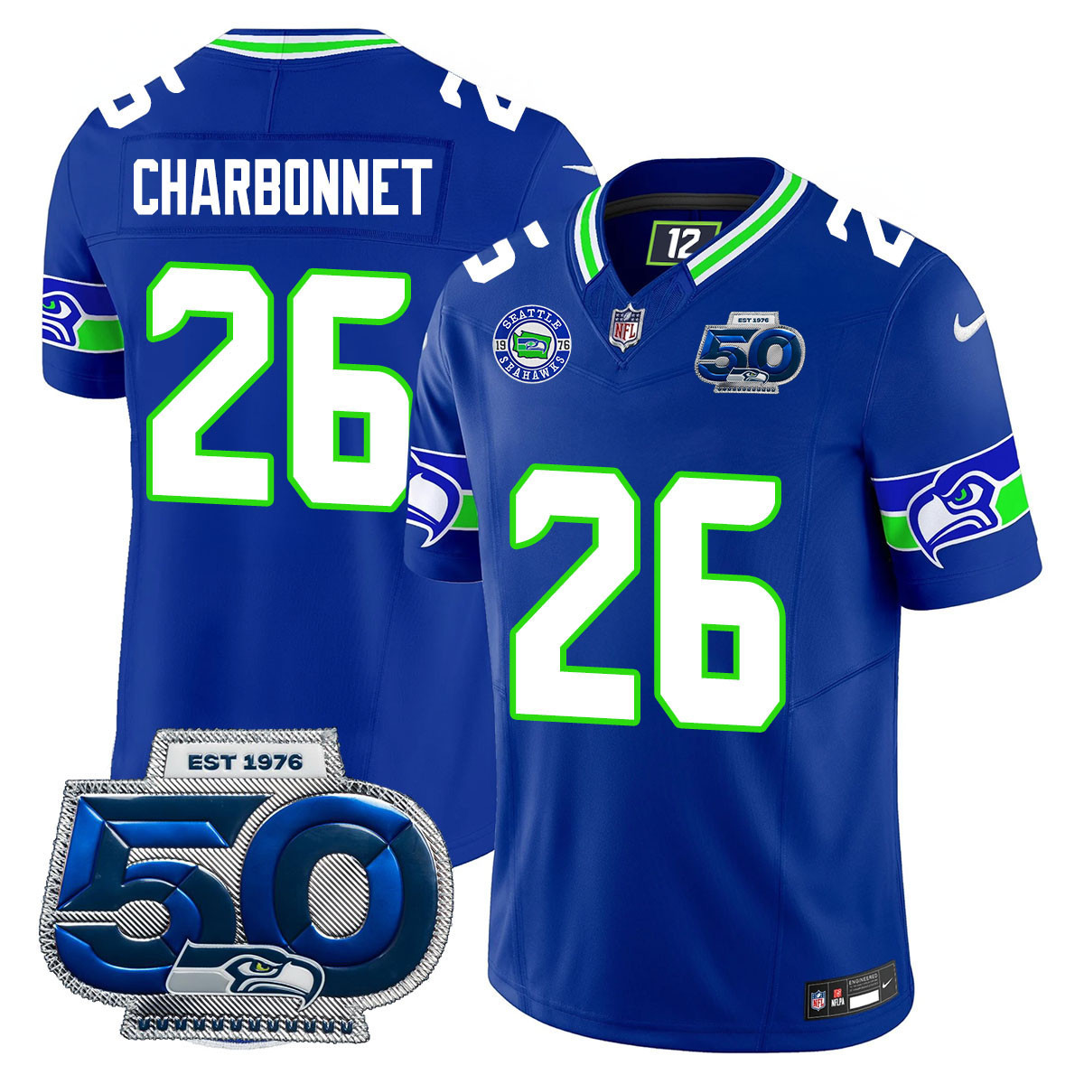 Be the first to review “Zach Charbonnet – 26 Men’s Seattle Seahawks 50th Season Vapor Limited White Jersey – All Stitched”