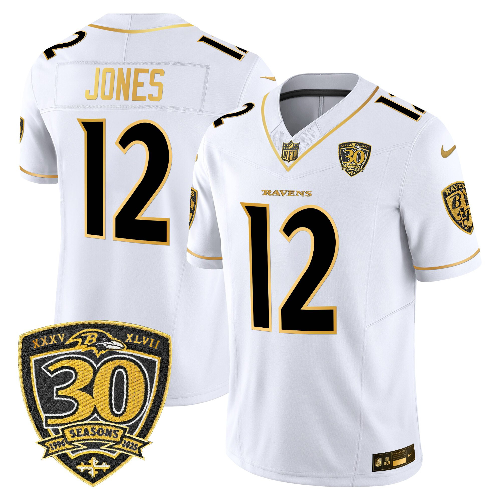 Be the first to review “Zay Flowers Men’s Baltimore Ravens 2025 Gold Vapor Limited White Gold Jersey – 30th Anniversary Patch – All Stitched”