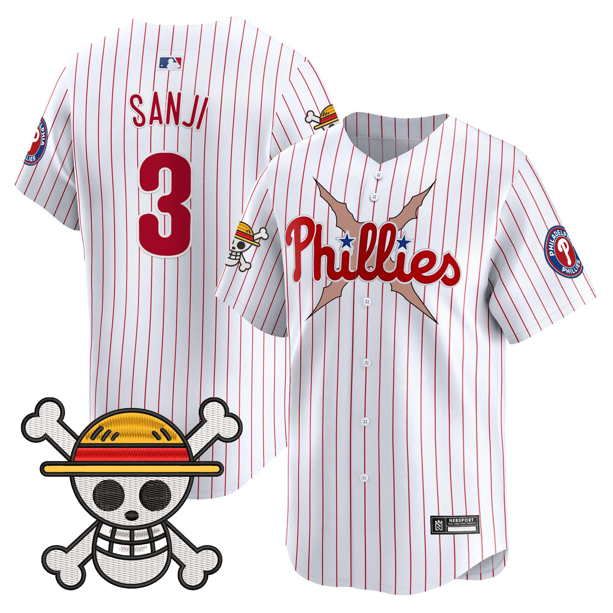Zoro Men’s Philadelphia Phillies x One Piece 2025 Vapor Premier Limited Pinstripe Jersey – All Stitched